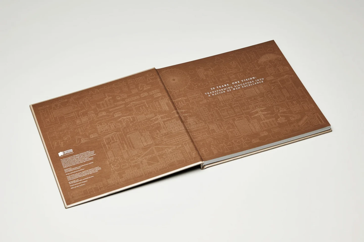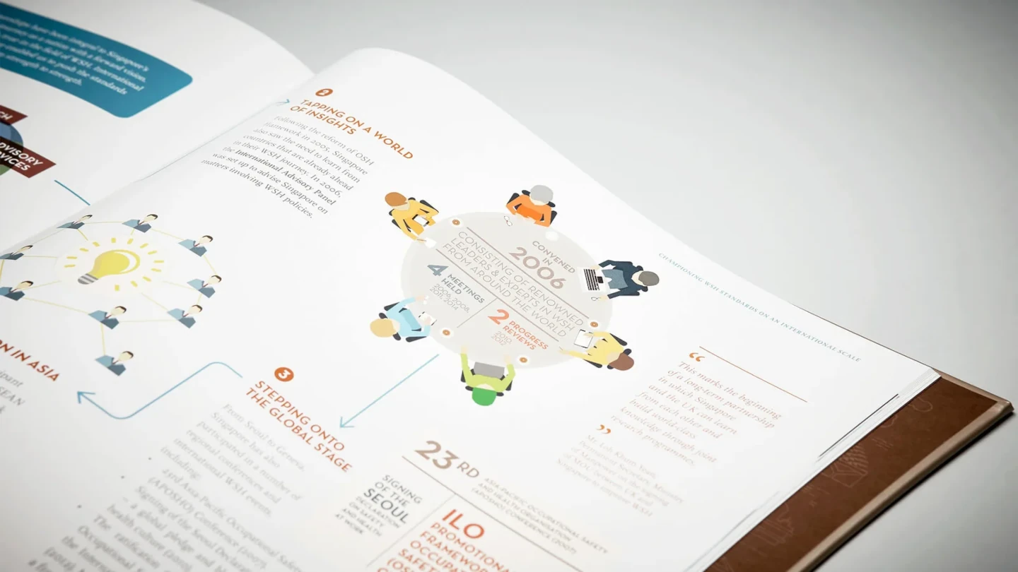 The ‘50 Years, One Vision’ coffee-table book is a rich chronology of the workplace safety and health landscape in Singapore. From the historical archives and personal collections of contributors, we delivered a well-researched and compelling story that unfolds with the help of vivid photographic spreads and illustrated iconography.